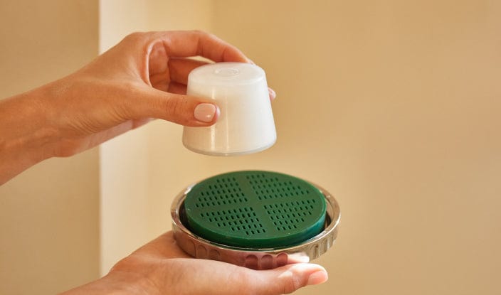 Vitaclean uses triple filtration to infuse your shower water with Vitamin C, remove chlorine and contaminants to protect your skin and hair.